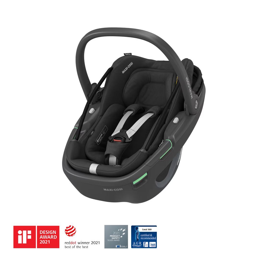 Maxi-Cosi Coral 360 Dönebilir İsofix Bazalı 2'si Bir Arada Ana Kucağı ve Oto Koltuğu Essential Black
