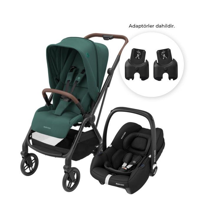 Maxi-Cosi Leona2-Cabriofix I-Size Tek Elle Katlanabilen Ultra Kompakt Çift Yönlü Seyahat Sistem Bebek Arabası Green-Black