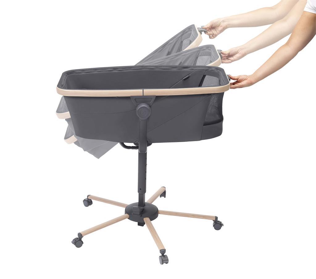 Alba, beşik, yatar koltuk ve mama sandalyesi arasında kolayca geçiş yapar ve yüksekliği de ayarlanabilir. Mobil tasarımı evde birlikte hareket etmenizi sağlar.