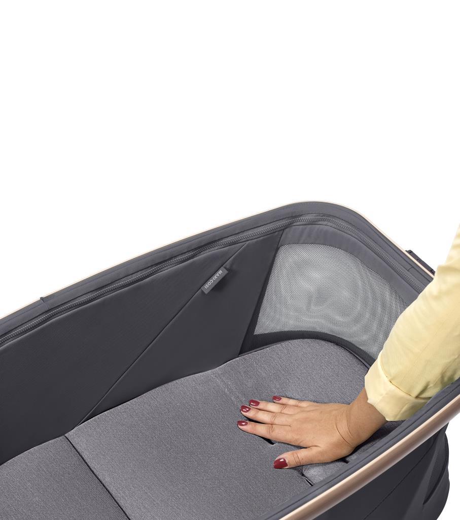 Maxi-Cosi Alba'nın ekstra kalın yatağı, gelişmiş yastıklama özelliğiyle bebeğinizin dinlenmesi ve biraz kestirmesinin keyfini çıkarması için en iyi konforu sunar. Küçük çocuğunuz ister beşikte düz yatıyor olsun ister yatar koltukta oynuyor olsun, her zaman rahat bir koza gibi olacak. Alba, gün boyu konfor sağlamak amacıyla bebeğin kafasının etrafında gelişmiş havalandırma ve maksimum nefes alabilirlik sağlayan örgü kumaşlara sahiptir. Ve yastıklı mama sandalyesi koltuğu, çocuğunuza kahvaltıdan akşam yemeğine kadar sizinle birlikte masada rahat bir koltuk sağlar.