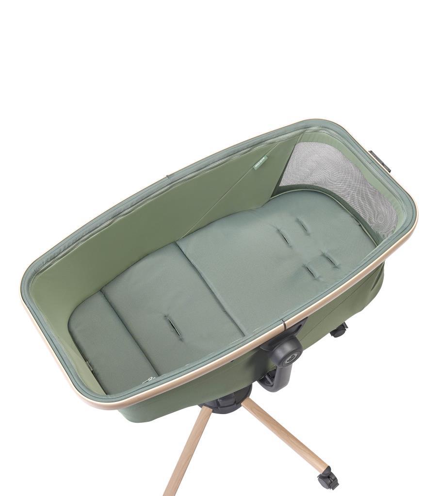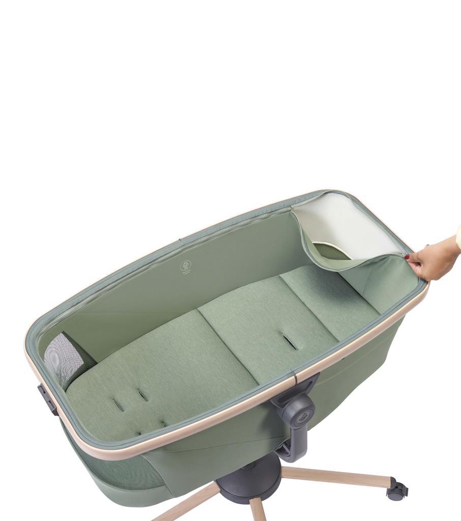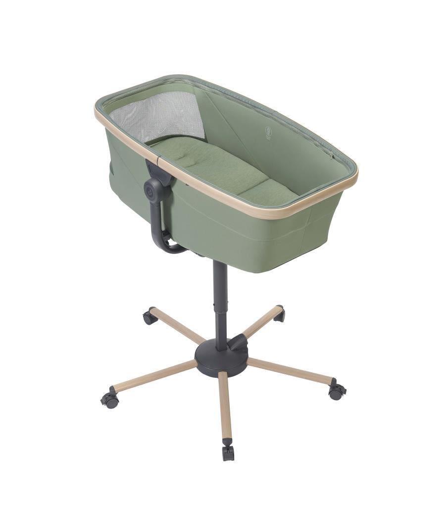 Maxi-Cosi Alba, bebeğinizin gün boyunca yanınızda kalmasına yardımcı olmak için tekerleklerle tasarlanmış şık, hepsi bir arada beşik, yatar koltuk ve mama sandalyesidir. Doğumdan 3 yaşına kadar mobil tasarımı, evde birlikte kolayca hareket etmenizi sağlar. Böylece siz işlerinizi hallederken bebeğiniz her yerde rahatlıkla oynayabilir, yemek yiyebilir ve kestirebilir. Alba, süper yumuşak %100 geri dönüştürülmüş kumaşlardan üretilmiştir ve bebeğiniz için en iyi konforu sağlamak için ekstra kalın bir yatağa sahiptir.