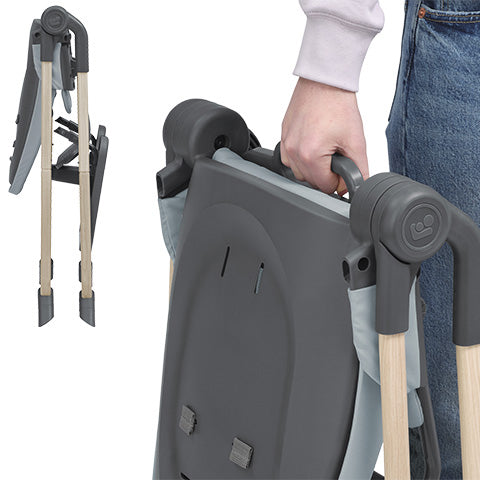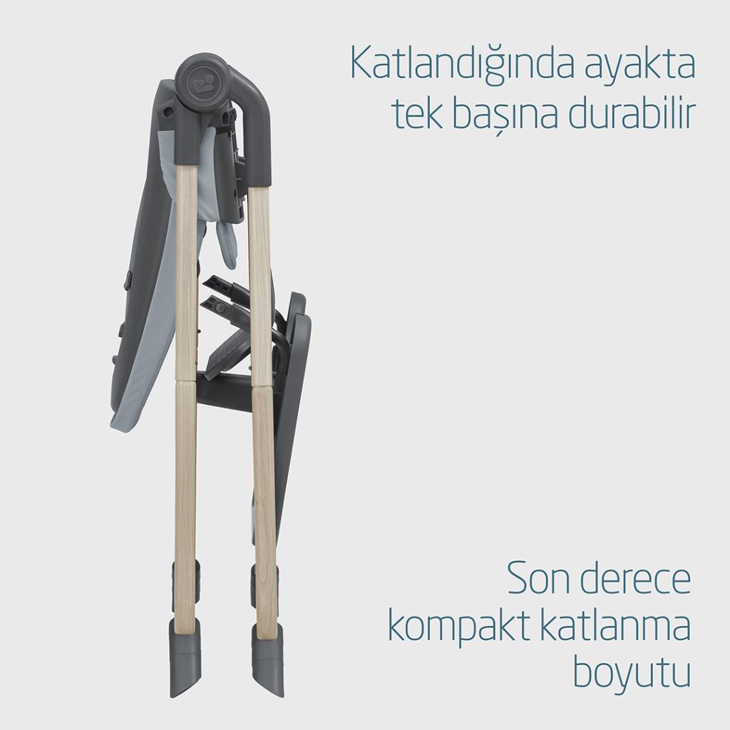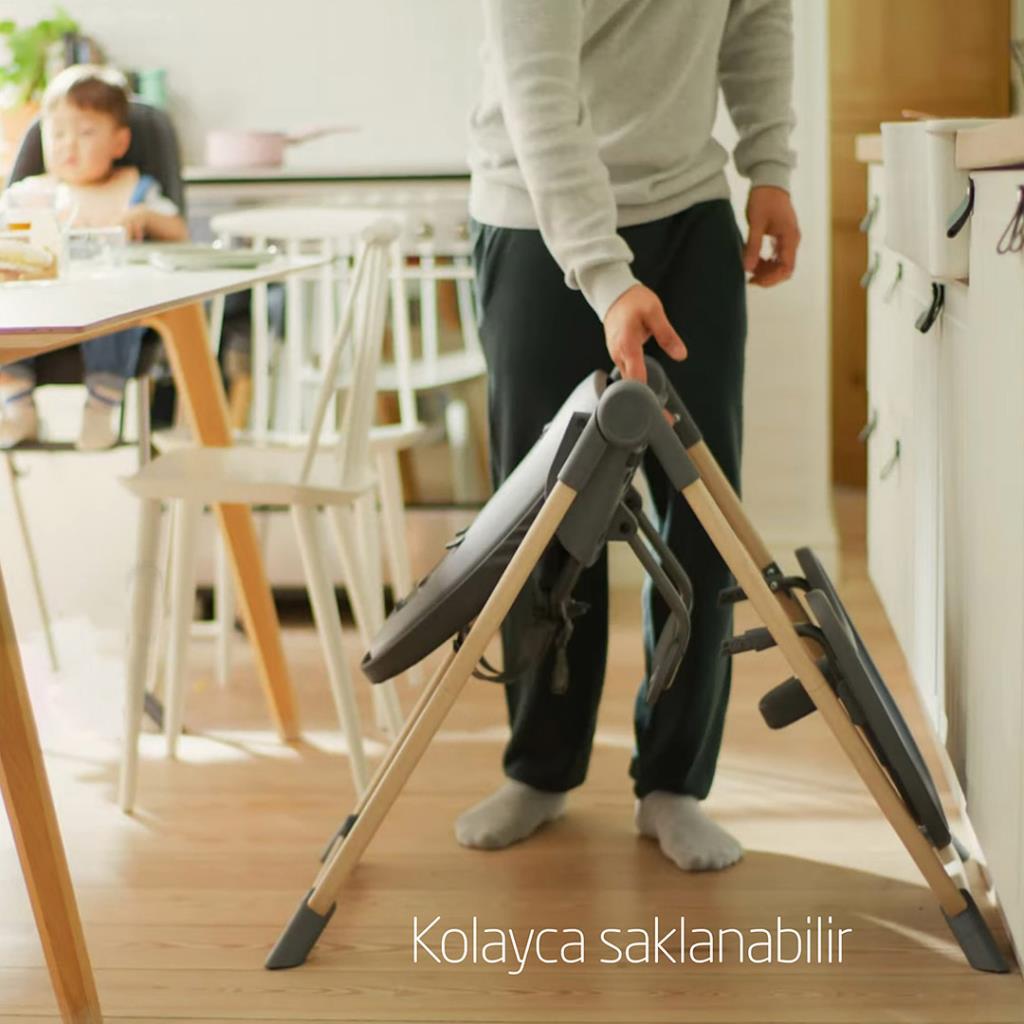 | Yemek zamanı bittiğinde ve biraz ekstra yaşam alanına ihtiyaç duyduğunuzda, hafif tasarımı (4,8 kg) ve ultra kompakt katlaması sayesinde Ava'yı kolayca saklayabilirsiniz. |