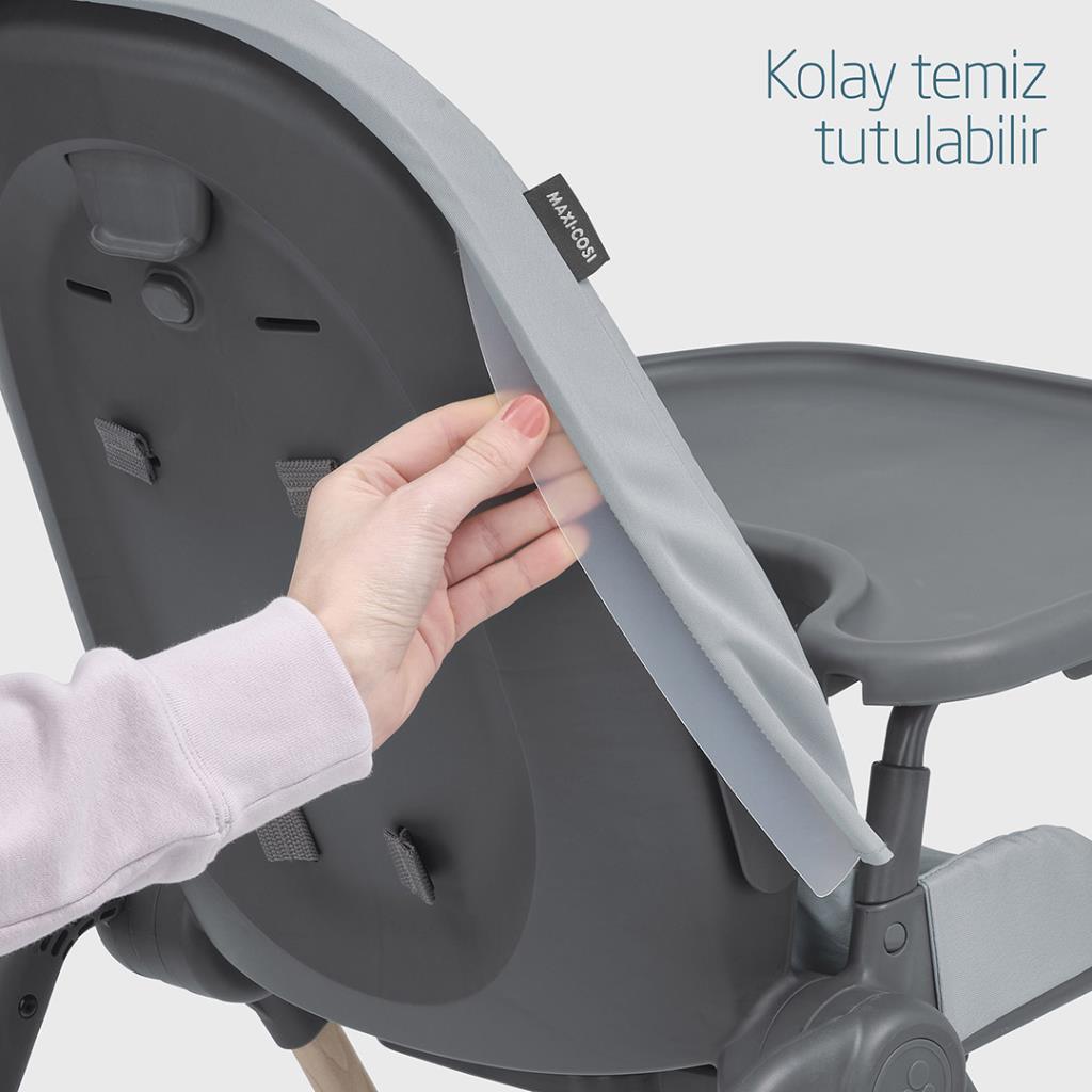Dağınıklık için yapıldı. Ava mama sandalyesi sütten püre haline getirilmiş sebzelere, ıslak tahıllardan doğum günü pastasına kadar her şeyle kaplanacağı için kumaşları su geçirmez ve makinede yıkanabilir.