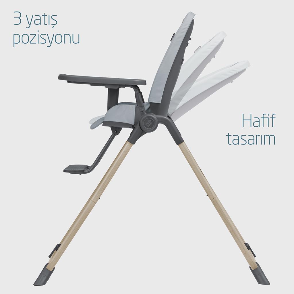 | Üçlü yatma pozisyonu ve konforlu dolgulu koltuğuyla bebeğiniz farklı yiyecekleri denemeye başladığı andan itibaren aile yemeklerine katılabilir, bu da doğumdan itibaren yiyecek çeşitlendirmesi için mükemmel bir açıyla olabilir. |