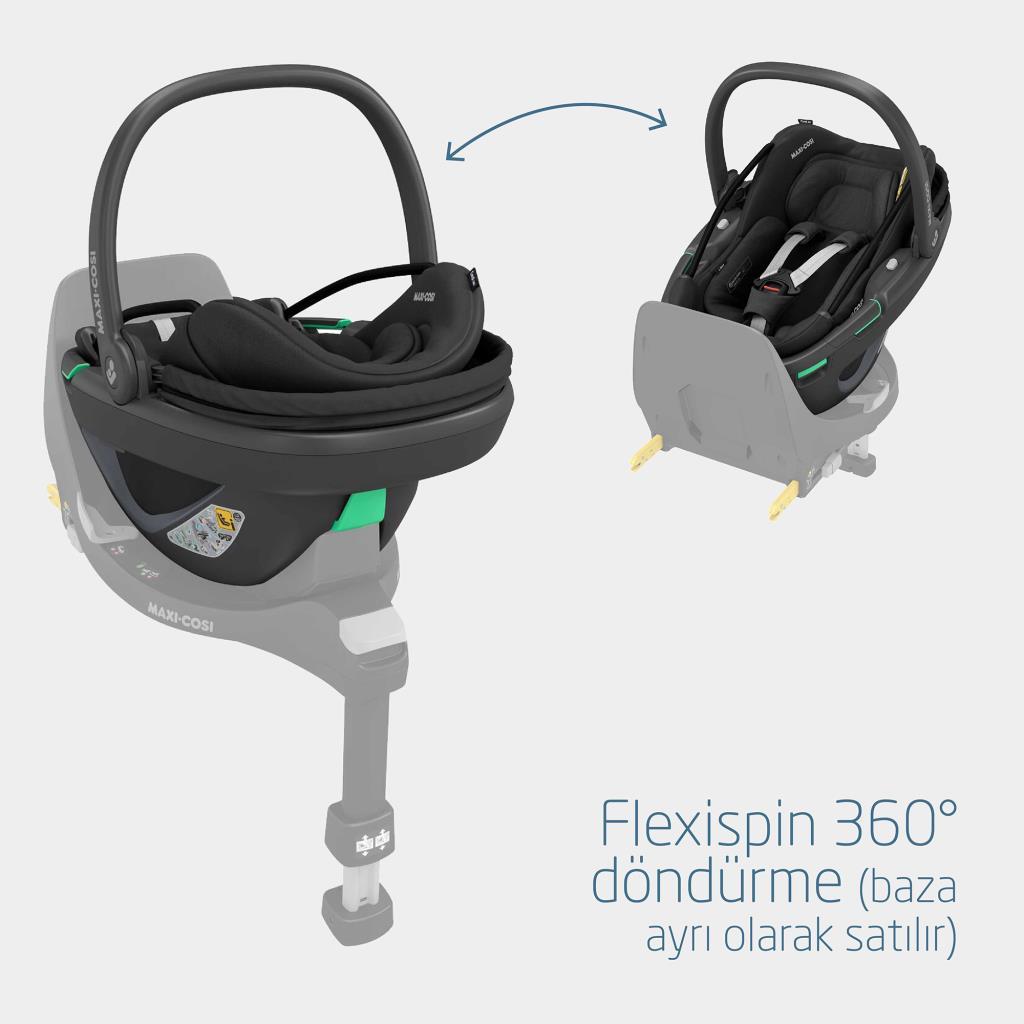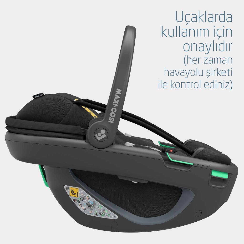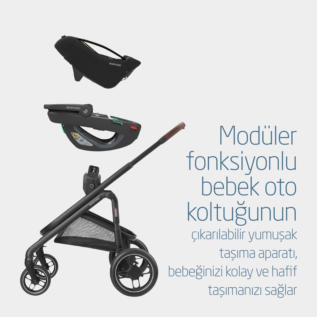 Maxi-Cosi Coral 360 Dönebilir 2'si Bir Arada Modüler Ana Kucağı ve Oto Koltuğu Essential Black
