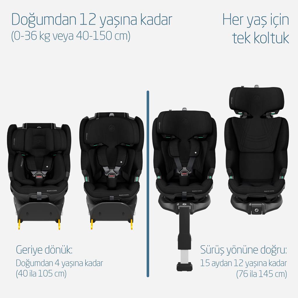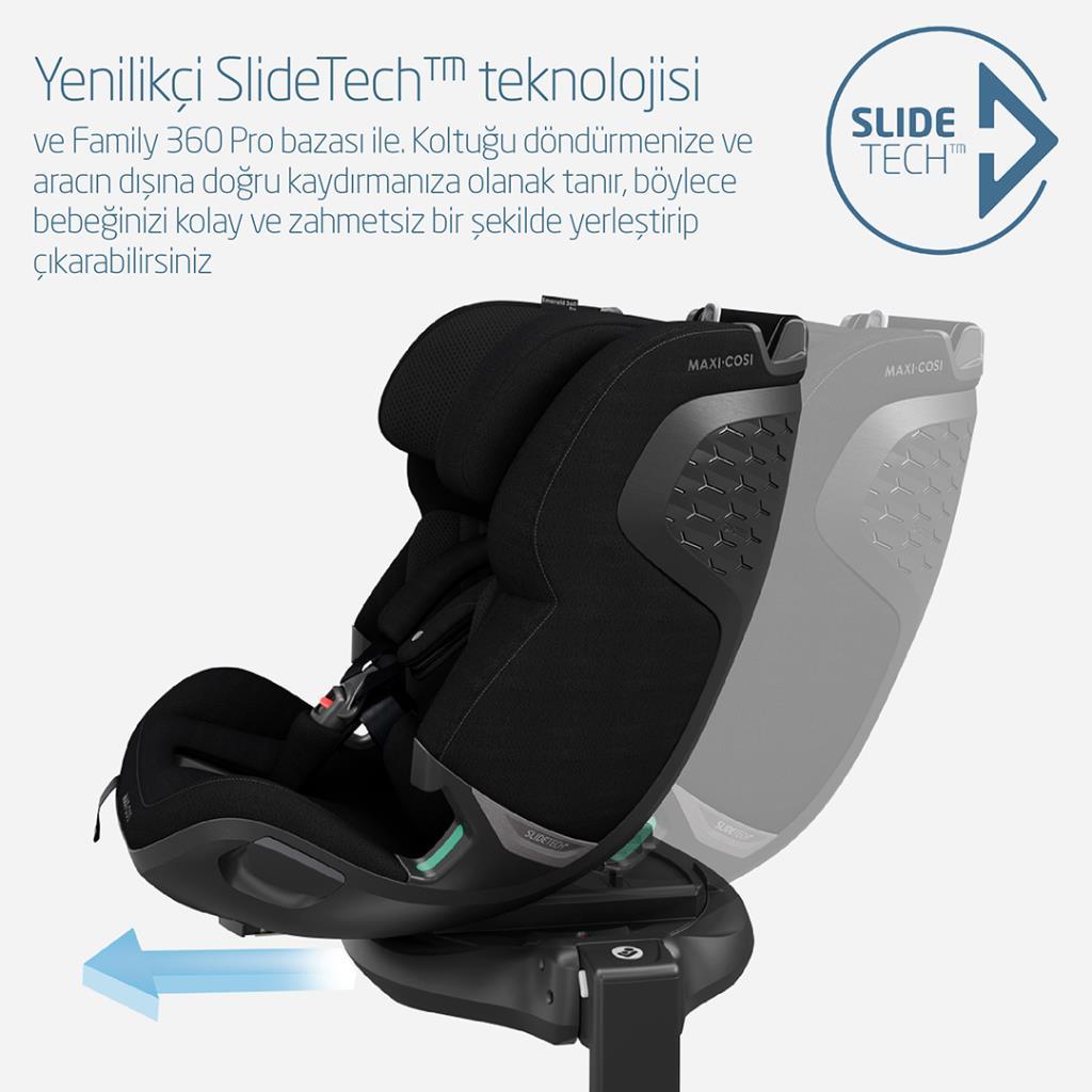 Maxi-Cosi Emerald 360 Pro I-Size Dünyanın İlk Kızaklı, Araç Dışına Çıkabilen İsofix'li 360 Dönebilir Yatabilir 0-36 kg Bebek Oto Koltuğu Authentic Black