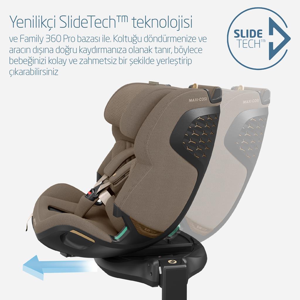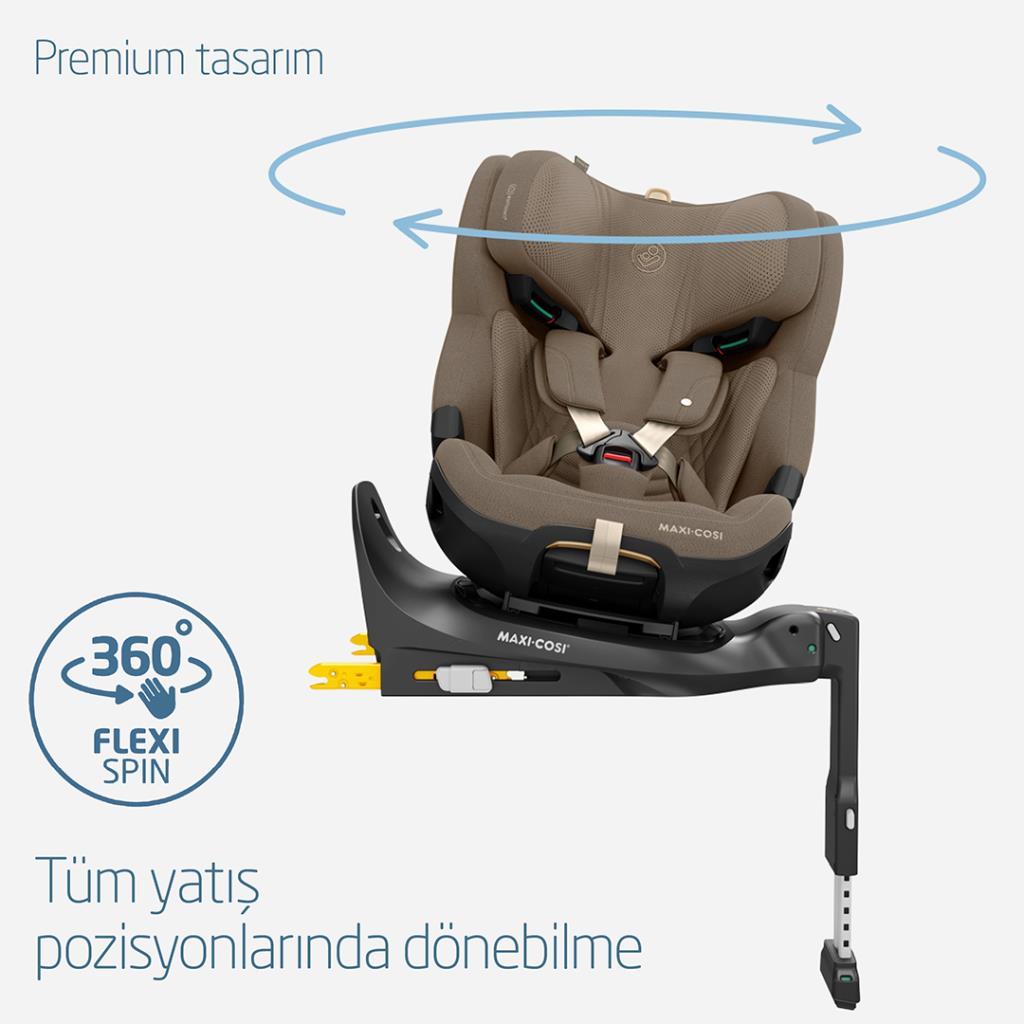 Maxi-Cosi Emerald 360 Pro I-Size Dünyanın İlk Kızaklı, Araç Dışına Çıkabilen İsofix'li 360 Dönebilir Yatabilir 0-36 kg Bebek Oto Koltuğu Authentic Truffle