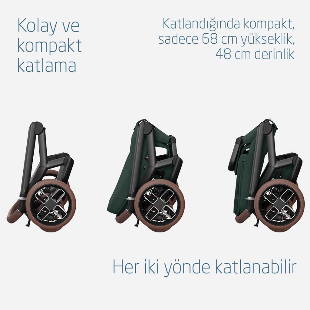 Maxi-Cosi Fame-Pebble 360 Pro Portbebeli Led Işıklı Entegre Telefon Şarj Üniteli Premium Bebek Arabası Twillic Green