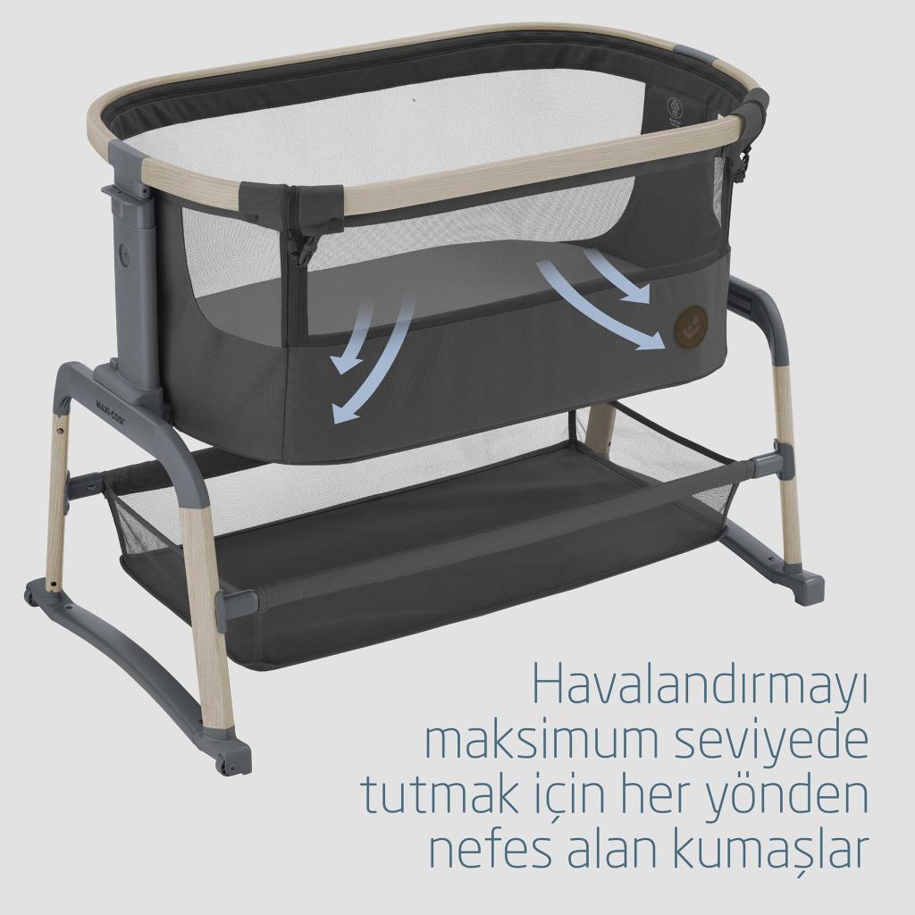Maxi-Cosi Iora Air Sallanabilen Ahşap Görünümlü Anne Yanı Beşik Beyond Graphite