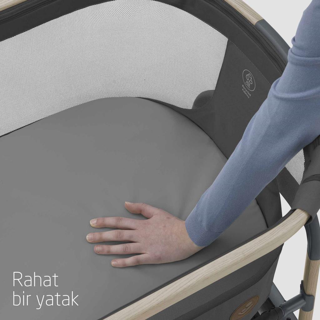 Maxi-Cosi Iora Air, yenidoğan bebeğinizin değerli 0-6 ayları için özel olarak tasarlanmıştır. Birlikte uyumak bebeğinizi yanınızda tutar ve duygusal bağınızın güçlenmesine yardımcı olur. Araştırmalar yakın olmanın bebeklerin gelişimi açısından daha iyi olduğunu gösteriyor; daha düzenli nefes alırlar, daha hızlı büyürler ve daha az stres yaşarlar. Bebeğinize kendi alanını verme zamanı geldiğinde, süper rahat yatak ve sağlam çerçeve, mükemmel bir bağımsız beşik haline gelir. Böylece bebeğiniz kendi tanıdık yatağında uyumaya devam edebilir.