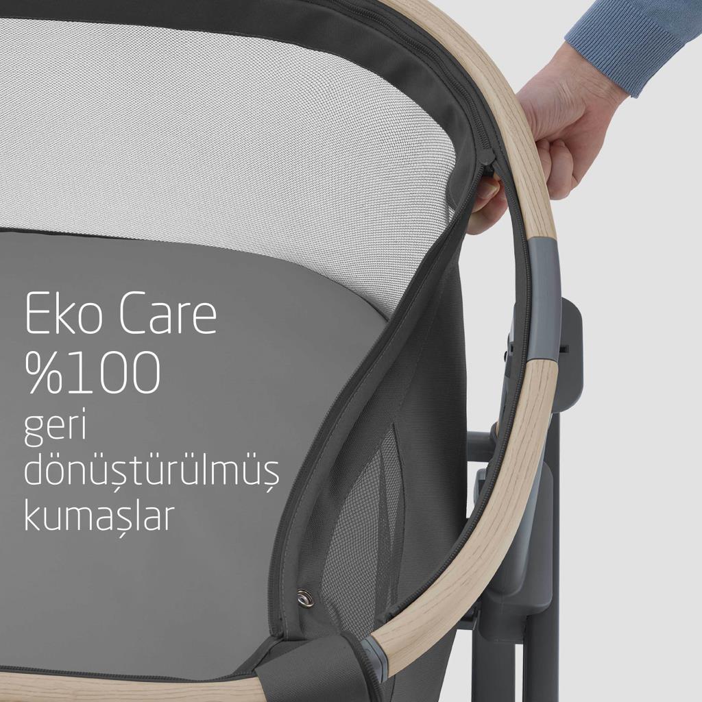 Kavisli, net hatları ve şık ahşap efektli estetiğiyle Maxi-Cosi Iora Air yardımcı yataklı kanepe, her modern ev iç mekanına uyum sağlar. Ve çok yönlü örgü kumaşı ile şık, minimal açık bir tasarıma sahiptir. Iora Air ayrıca gezegen dostu Eco Care, %100 geri dönüştürülmüş kumaşa sahiptir. Süper yumuşak ve kaliteli Eco Care, geri dönüştürülmüş plastik şişelerden yapılmıştır. Plastik küçük parçalara ayrılır, ipliğe dönüştürülür ve daha sonra Maxi-Cosi'den bekleyeceğiniz yumuşak, nefes alabilen özelliklerin aynısını sağlayan kumaşa dokunur.