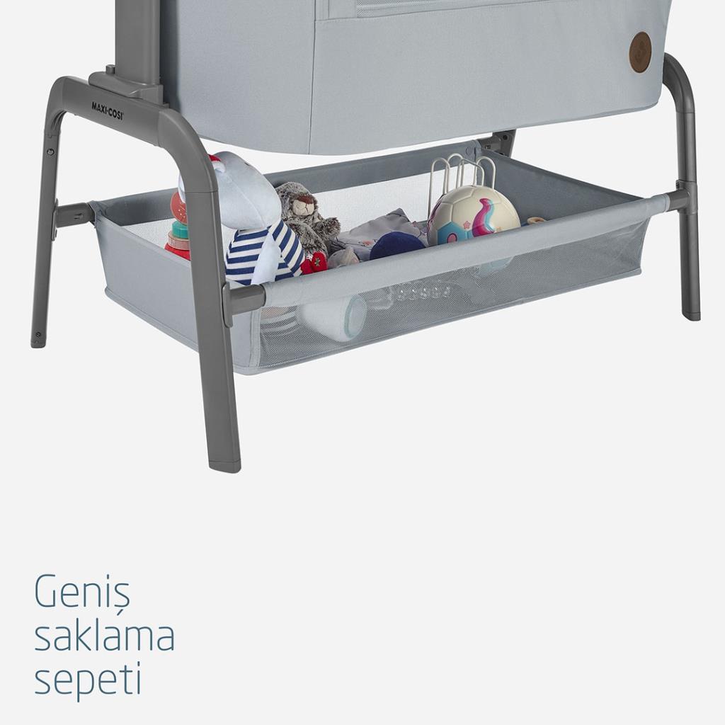 Maxi Cosi Iora Anne Yanı Beşik kolayca katlanabilir ve kullanışlı seyahat çantasına yerleştirilebilir, bu sayede bebeğinizle birlikte her yere gelebilir. İyi bir gece uykusu için, bebeğinize gereken bez, kıyafet, emzik gibi tüm temel ihtiyaçları geniş kolay ulaşılabilir XL sepette kolayca saklanabilir. Bu, her zaman kolayca dinlenebileceğiniz anlamına gelir.