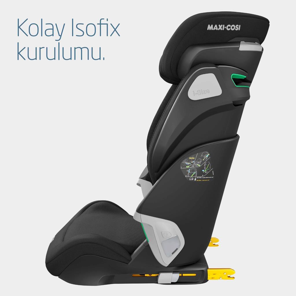 Maxi-Cosi Kore PRO i-Size Çocuk Oto Koltuğu, çocuğunuzun araba koltuğuna kolayca oturmasını ve kendi başına emniyet kemerini takmasını kolaylaştırmak için tasarlanmıştır. Koltuğun yanlarındaki açık alan, bağlantı tokasına kolay erişim sağlar, böylece çocuğunuz emniyet kemerini rahatça kavrayabilir ve herhangi bir güçlük çekmeden güvenli bir şekilde takabilir. Her şey onların elinde!Maxi-Cosi Kore PRO i-Size Çocuk Oto Koltuğu ISOFIX kancalarına takıldıktan sonra sırt desteği rahat bir pozisyon için arabanızın koltuğuna oturacak şekilde eğilir. Oto koltuğu çocuğunuzla birlikte büyüdüğü için uzun yıllar rahatlığını sürdürür. Sırtlığın yüksekliği ve genişliği ayarlanabilir, çocuğunuz 12 yaşına gelinceye kadar büyümesine uyum sağlar!