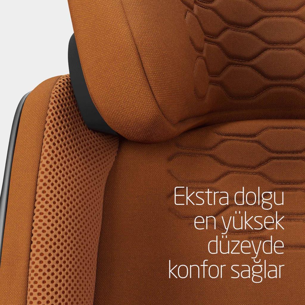Maxi-Cosi Kore PRO i-Size Çocuk Oto Koltuğunun nefes alabilir koltuk kılıfı sırtta ve koltuk başlığında kalın ve yumuşak bir dolguya sahiptir, bu da uzun yolculuklarda yüksek düzeyde konfor sağlar.