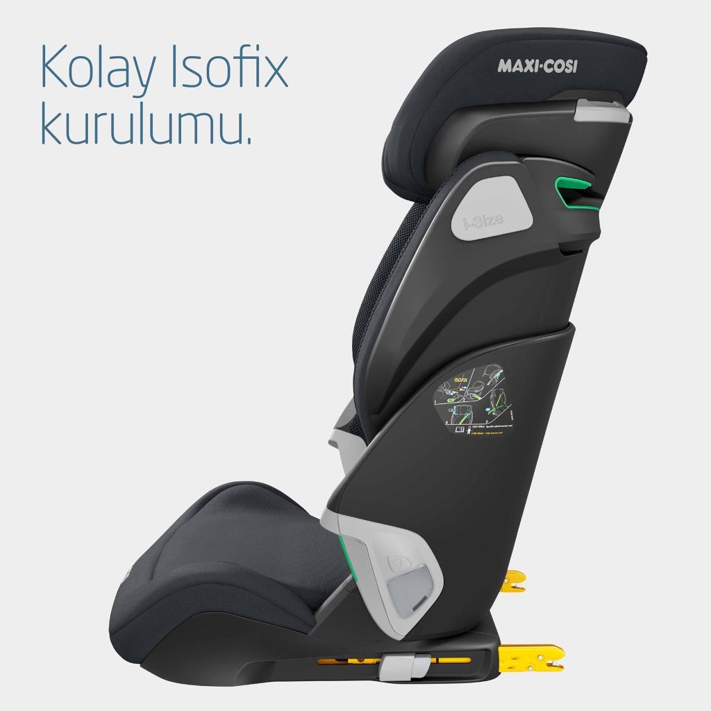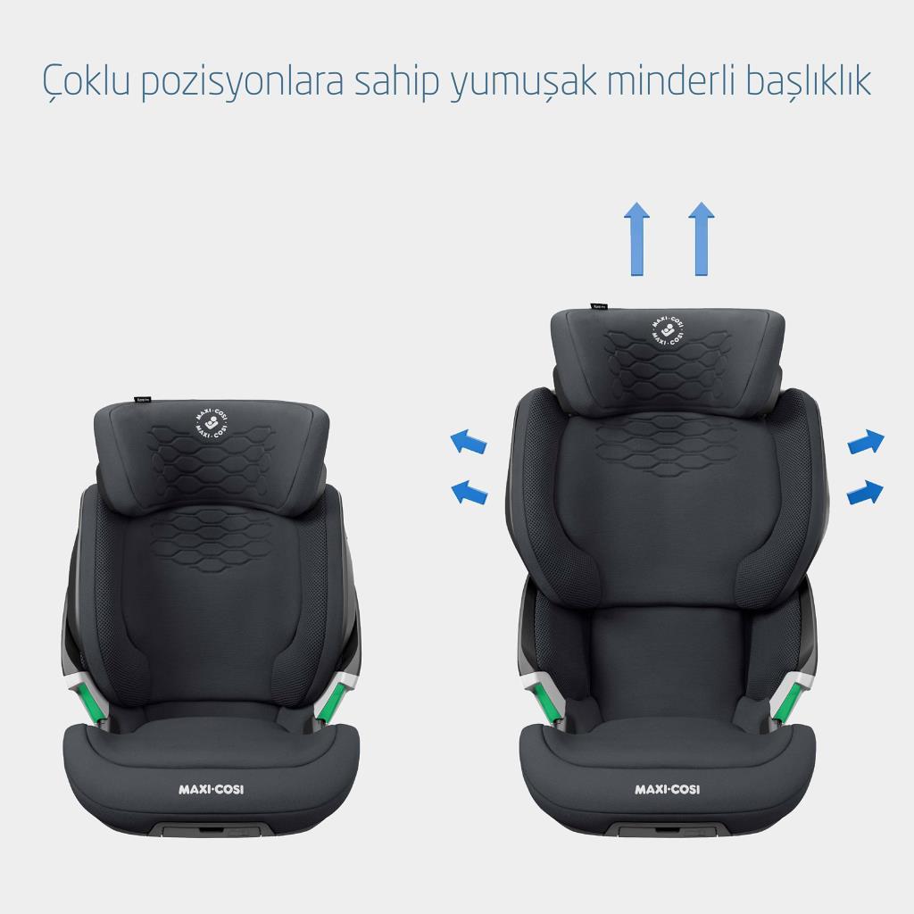 Maxi-Cosi Kore PRO i-Size Çocuk Oto Koltuğu ISOFIX kancalarına takıldıktan sonra sırt desteği rahat bir pozisyon için arabanızın koltuğuna oturacak şekilde eğilir. Oto koltuğu çocuğunuzla birlikte büyüdüğü için uzun yıllar rahatlığını sürdürür. Sırtlığın yüksekliği ve genişliği ayarlanabilir, çocuğunuz 12 yaşına gelinceye kadar büyümesine uyum sağlar!