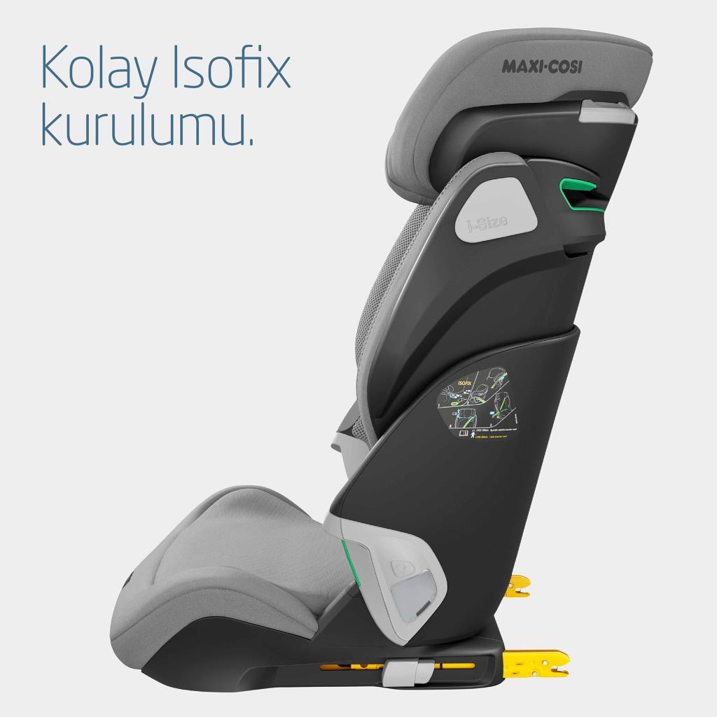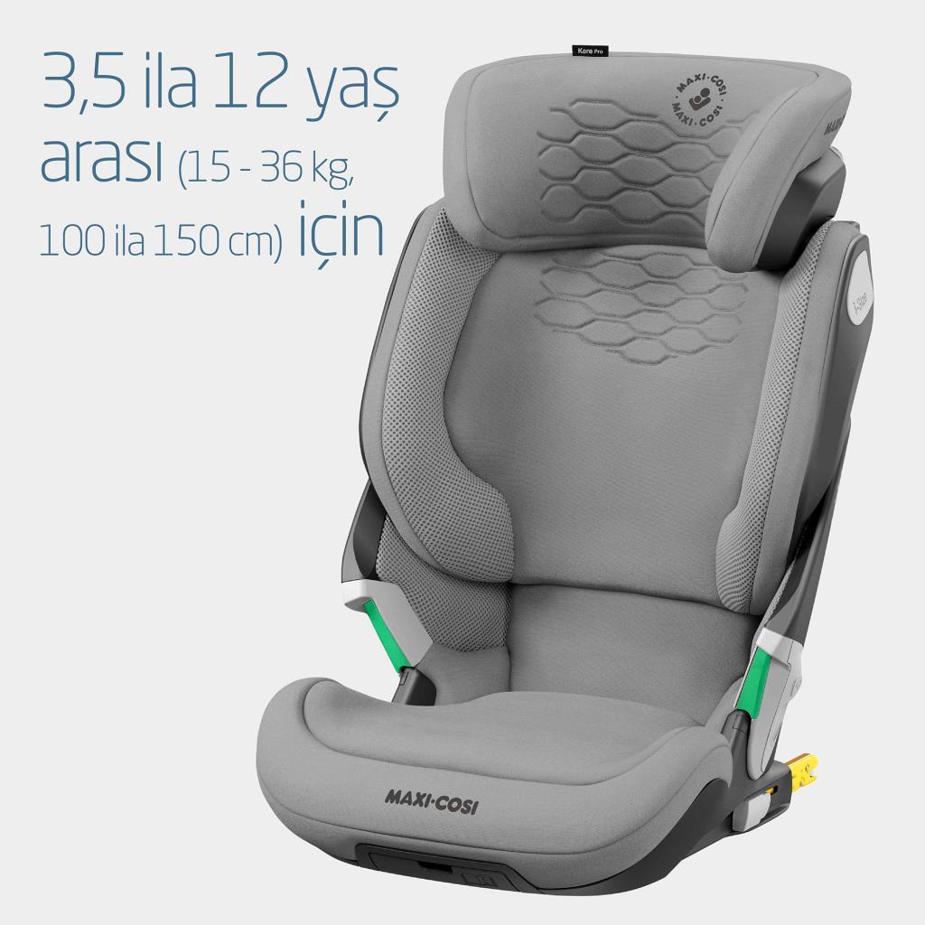 Maxi-Cosi Kore PRO i-Size Çocuk Oto Koltuğu, çocuğunuzun araba koltuğuna kolayca oturmasını ve kendi başına emniyet kemerini takmasını kolaylaştırmak için tasarlanmıştır. Koltuğun yanlarındaki açık alan, bağlantı tokasına kolay erişim sağlar, böylece çocuğunuz emniyet kemerini rahatça kavrayabilir ve herhangi bir güçlük çekmeden güvenli bir şekilde takabilir. Her şey onların elinde!Maxi-Cosi Kore PRO i-Size Çocuk Oto Koltuğu ISOFIX kancalarına takıldıktan sonra sırt desteği rahat bir pozisyon için arabanızın koltuğuna oturacak şekilde eğilir. Oto koltuğu çocuğunuzla birlikte büyüdüğü için uzun yıllar rahatlığını sürdürür. Sırtlığın yüksekliği ve genişliği ayarlanabilir, çocuğunuz 12 yaşına gelinceye kadar büyümesine uyum sağlar!