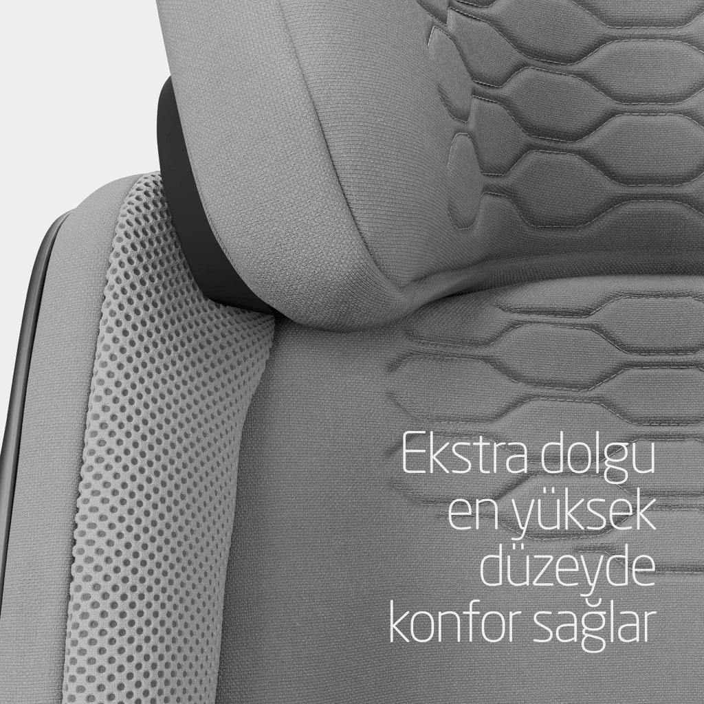 Maxi-Cosi Kore PRO i-Size Çocuk Oto Koltuğunun nefes alabilir koltuk kılıfı sırtta ve koltuk başlığında kalın ve yumuşak bir dolguya sahiptir, bu da uzun yolculuklarda yüksek düzeyde konfor sağlar.