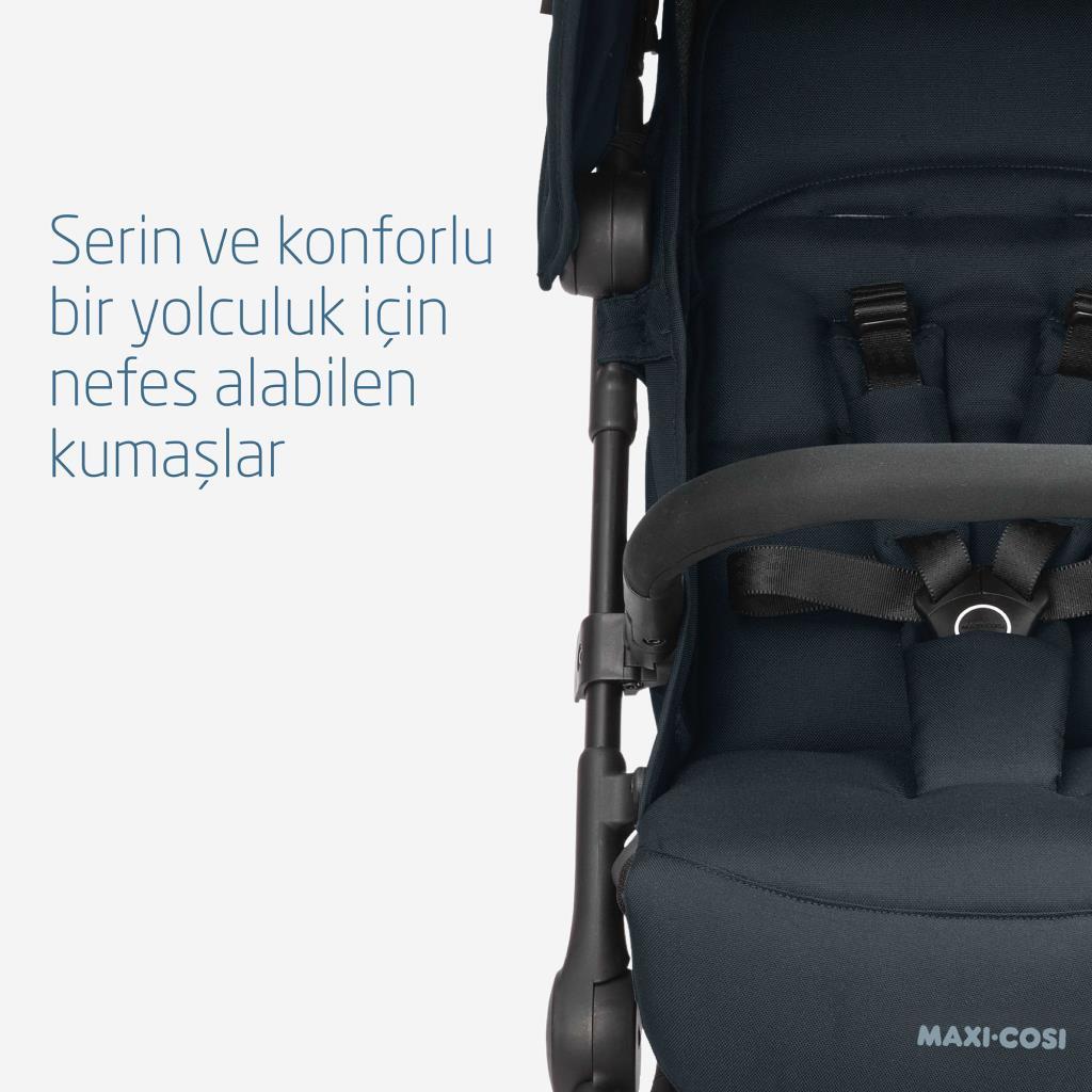 Çıkabilen ön barı sayesinde bebeğinizi kolayca Maxi Cosi Lara² Ultra Hafif ve Kompakt, Çift Sepetli Bebek Arabasının içine yerleştirebilirsiniz. Ekstra dolgulu beş noktalı emniyet kemeri güvenli ancak rahat olmalarını sağlar. Dolgulu oturma ünitesinin nefes alabilen kumaşı, sıcak havalarda bile her macerayı serin ve konforlu hale getirir. Dört tekerleğindeki şok emici süspansiyonlarıyla hemen dışarı çıkın ve dünyayı keşfedin! İnanılmaz derecede hafif ve kompakt olan Maxi Cosi Lara² Ultra Hafif ve Kompakt, Çift Sepetli Bebek Arabası, entegre omuz askısı ile kolayca taşınabilir ve en küçük yerlerde, hatta uçaklardaki bazı üst kabin dolaplarında bile saklanabilir. Hayat beklemez, siz de beklememelisiniz - dışarı çıkın ve birlikte yeni dünyanızı keşfedin!