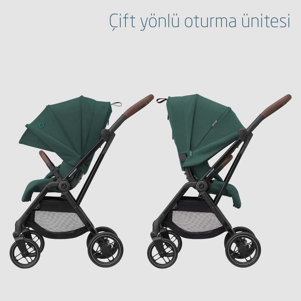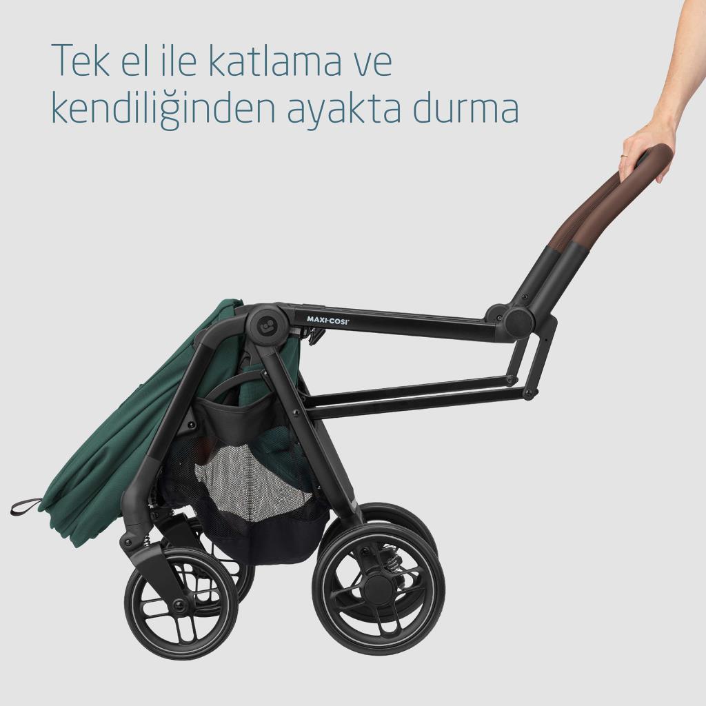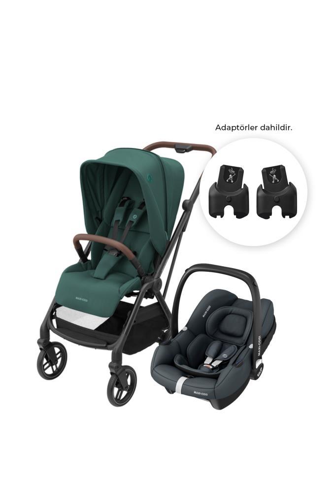 Maxi-Cosi Leona2-Cabriofix I-Size Tek Elle Katlanabilen Ultra Kompakt Çift Yönlü Seyahat Sistem Bebek Arabası Green-Graphite
