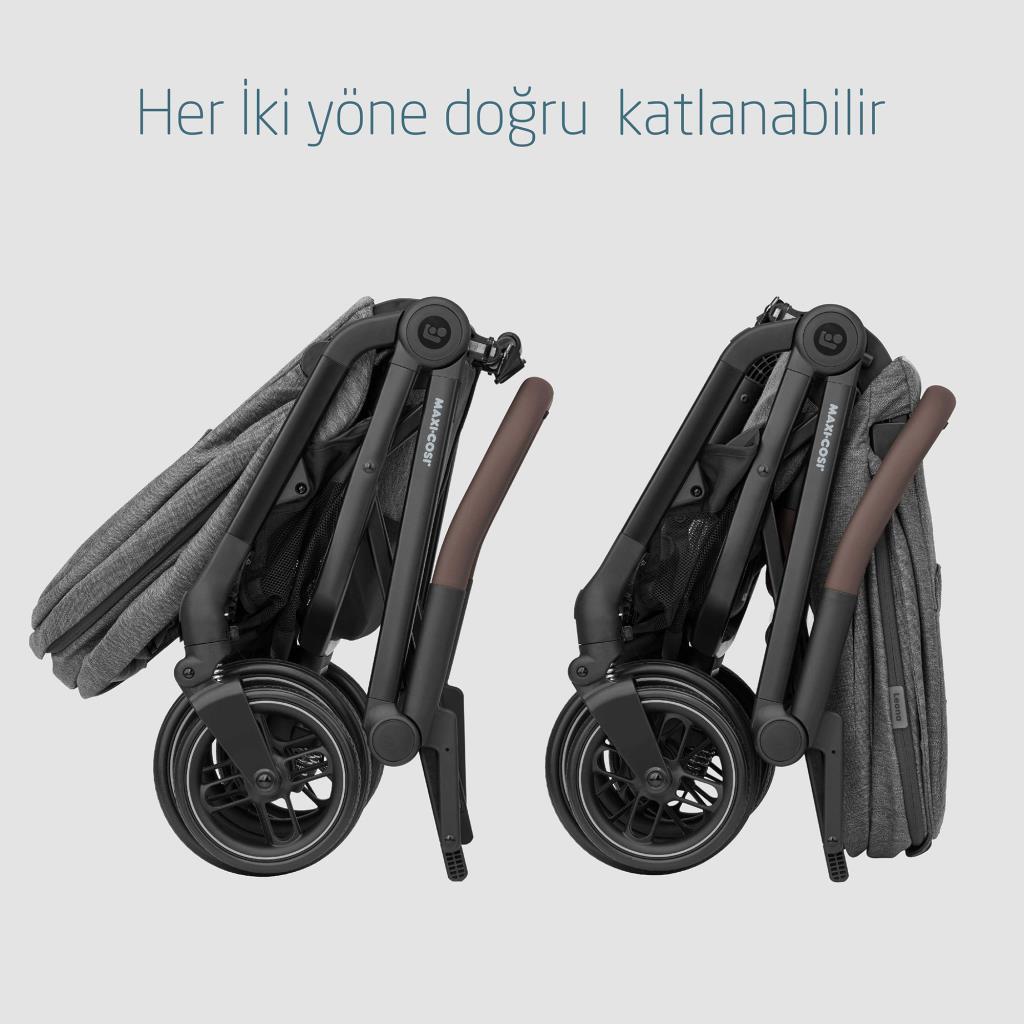 Maxi-Cosi Leona2-Cabriofix I-Size Tek Elle Katlanabilen Ultra Kompakt Çift Yönlü Seyahat Sistem Bebek Arabası Grey-Graphite