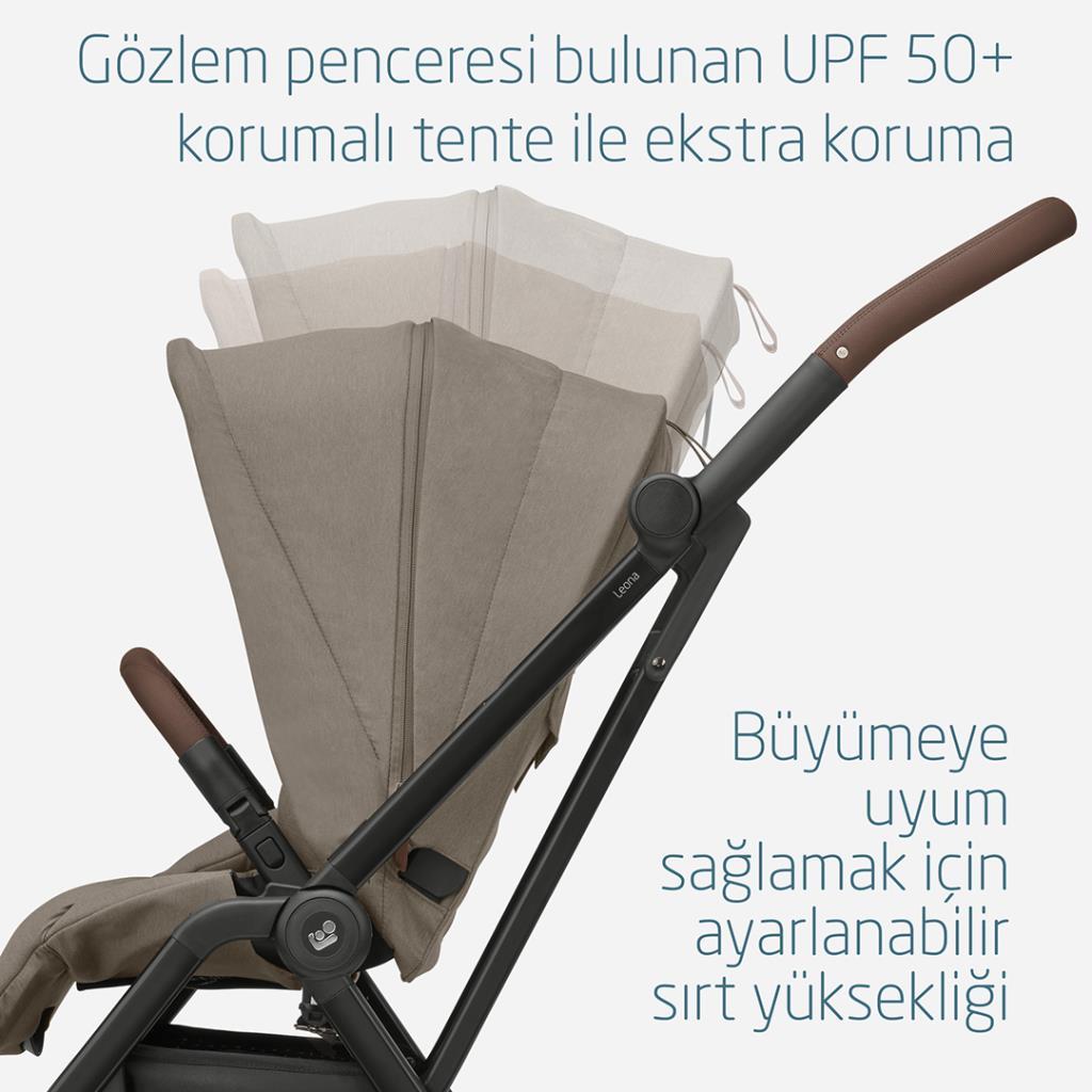 Leona bebek arabası doğumdan itibaren kullanılabilir, böylece dünyayı birlikte keşfetmeye hemen başlayabilirsiniz, akıllı tasarımı uyumlu bir portbebe ve bebek oto koltuğu ile birlikte kullanılabilir.