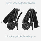 Leona² bebek arabası, maksimum konforu ultra kompakt bir boyuta sığdırır. Süper hafif, küçük alanlara, taksi bagajlarına sığar ve şehirde yaşamayı kolaylaştırır.