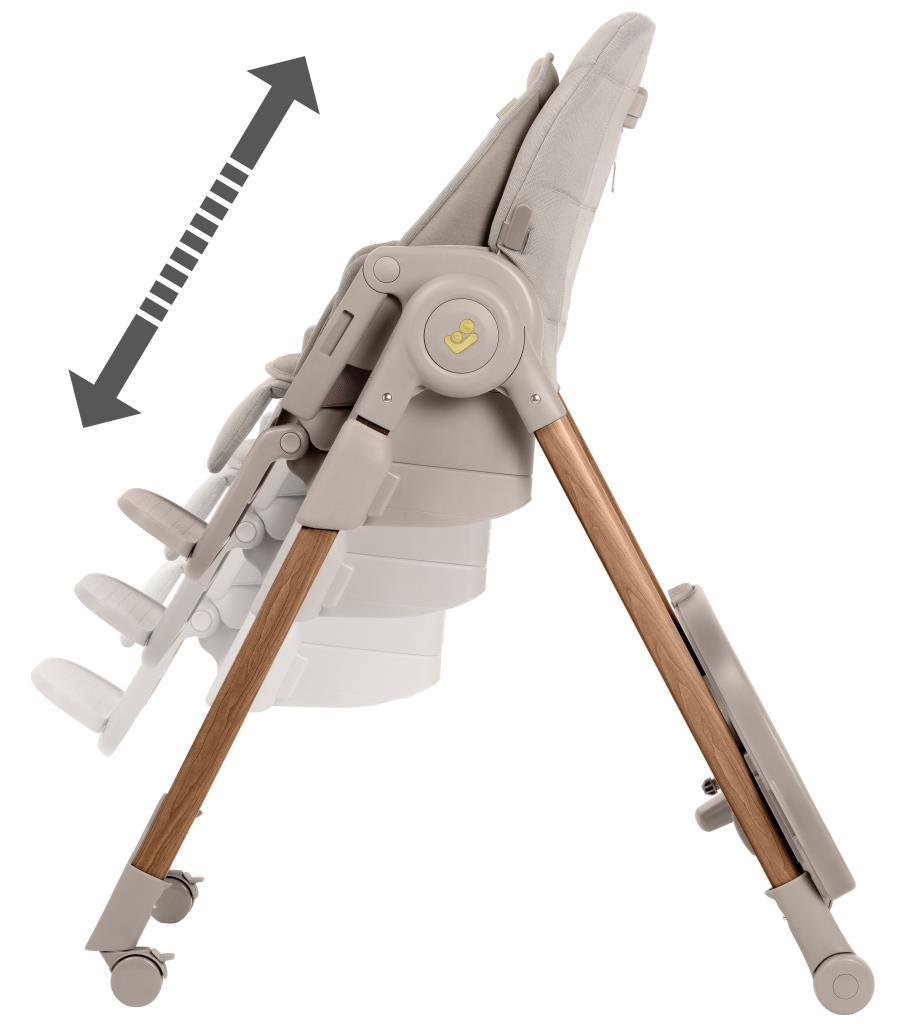 Çoklu yatırma, tepsi, bacak desteği ve ayak desteği pozisyonları dahil olmak üzere tamamen ayarlanabilir bir tasarıma sahip olan Minla Plus, çocukluk boyunca masada en iyi konforu sağlar. Yumuşak dolgulu yenidoğan iç kısmı sayesinde, küçük çocuğunuz yemek saatlerinde masada aileye katılabilir.