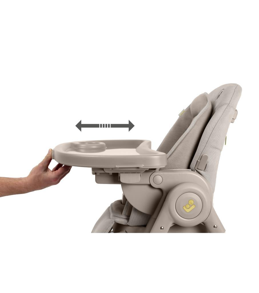 Tek elle döndürülebilen tepsi ve kolay takılabilen emniyet kemerleri ile çocuğunuzun yüksek sandalyesine binmesi ve inmesi hiç bu kadar kolay olmamıştı.