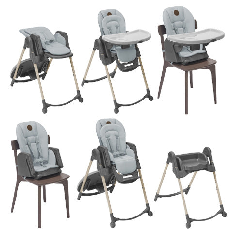 Tek elle döndürülebilen tepsi ve kolay takılabilen emniyet kemerleri ile çocuğunuzun yüksek sandalyesine binmesi ve inmesi hiç bu kadar kolay olmamıştı.