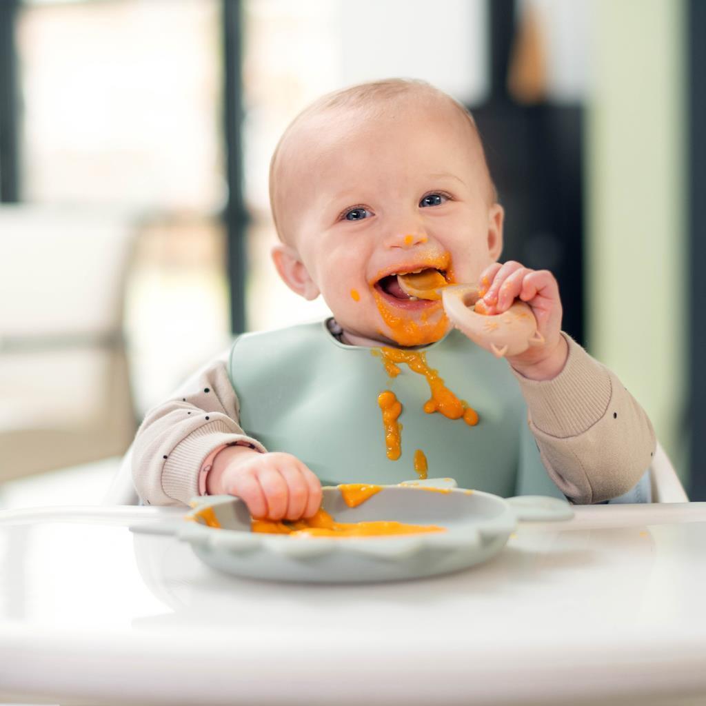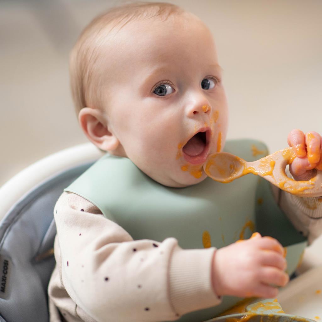 - Kaymaz lastik ayaklar: Moa'nın yemek zamanı ve oyun sırasında çocuğunuz için güvenli bir taban sağlayan kaymaz lastik ayakları sayesinde stabilite endişe verici değildir.