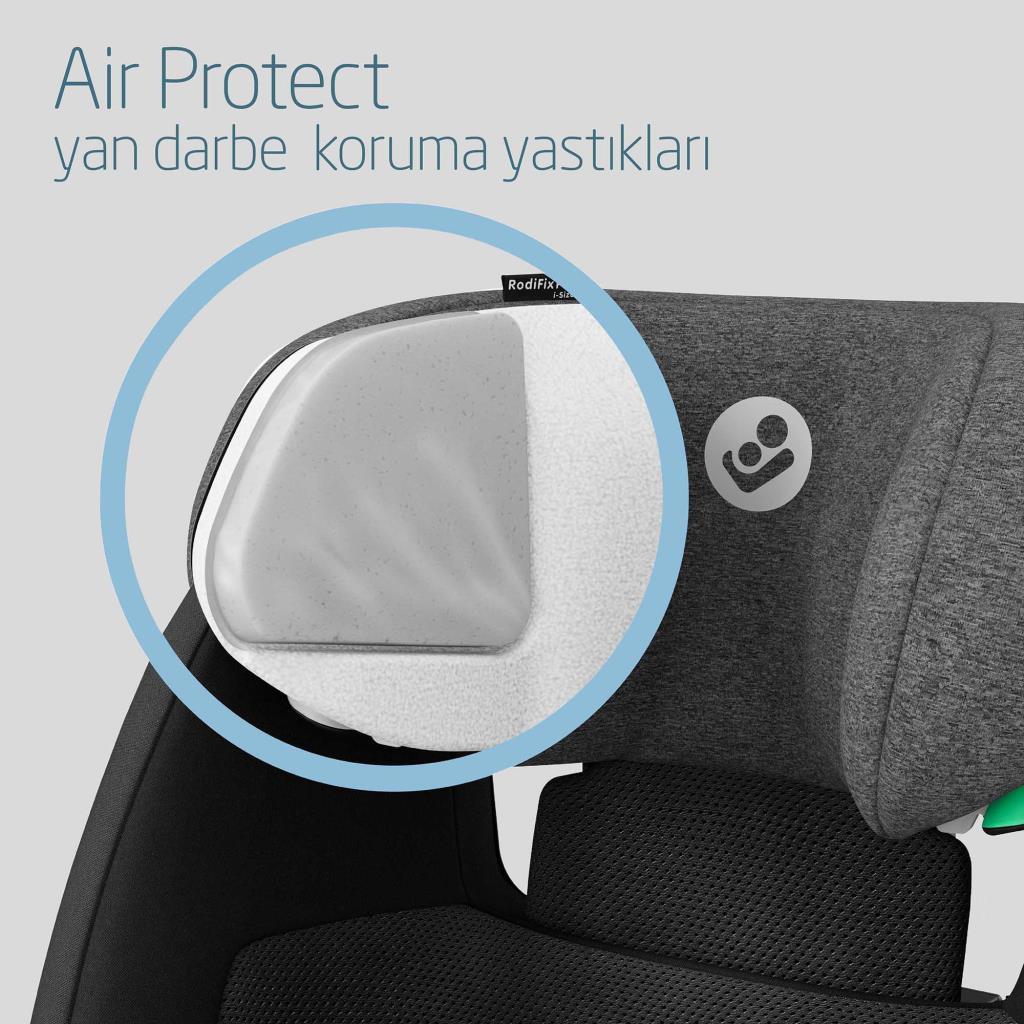 Koltuk başlığındaki patentli AirProtect® yan darbe teknolojisi ekstra koruma sağlar ve kafa travması riskini %20'ye kadar azaltır.