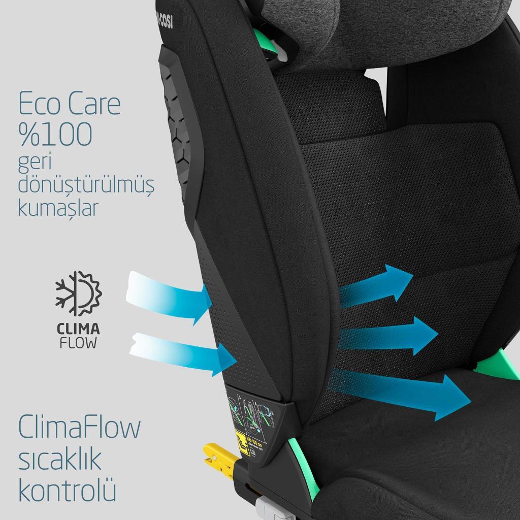 RodiFix Pro i-Size çocuk oto koltuğumuz, çocuğunuz için yıllarca rahatlık sunan birden fazla, rahatlatıcı yaslanma pozisyonuna sahiptir. i-Size güvenlik standartları ve hem yüksekliği hem de genişliği değişen ayarlanabilir açık tasarımıyla, çocuğunuz bu 2/3 grup araba koltuğuyla büyürken her zaman güvenli ve rahat olacak. Yan darbelere karşı korumayı en üst düzeye çıkarmak için ekstra yüksek yan kanatlar ve Eco Care %100 geri dönüştürülmüş kumaşlar kullanılarak yapılan bu model tam sizin için!