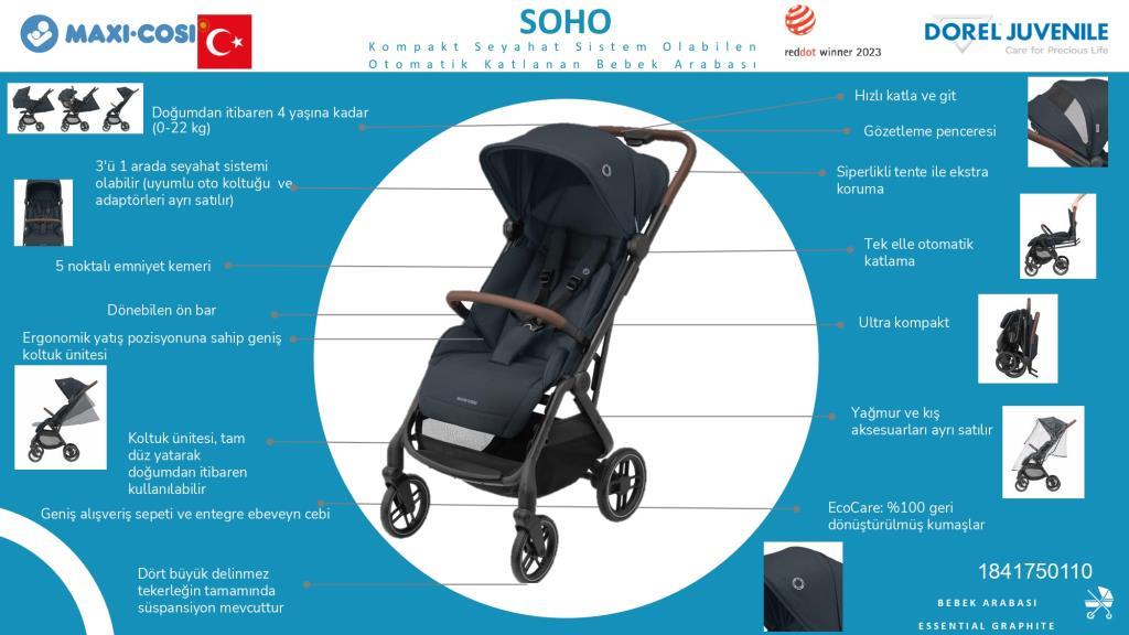 Maxi-Cosi Soho Kompakt Seyahat Sistem Olabilen Otomatik Katlanan Bebek Arabası Twillic Truffle