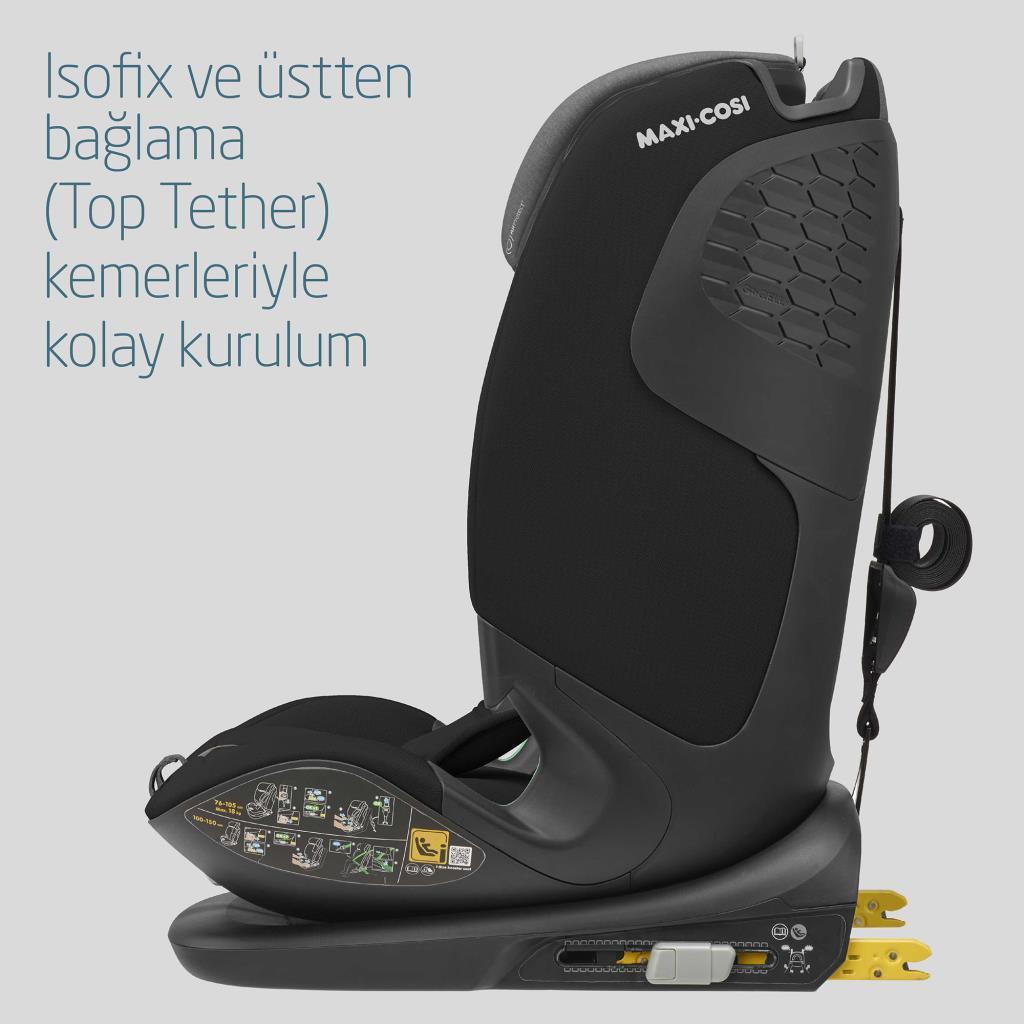 ISOFIX ve Top Tether bağlantısı, koltuğun araca güvenli bir şekilde bağlı kalmasını sağlar.