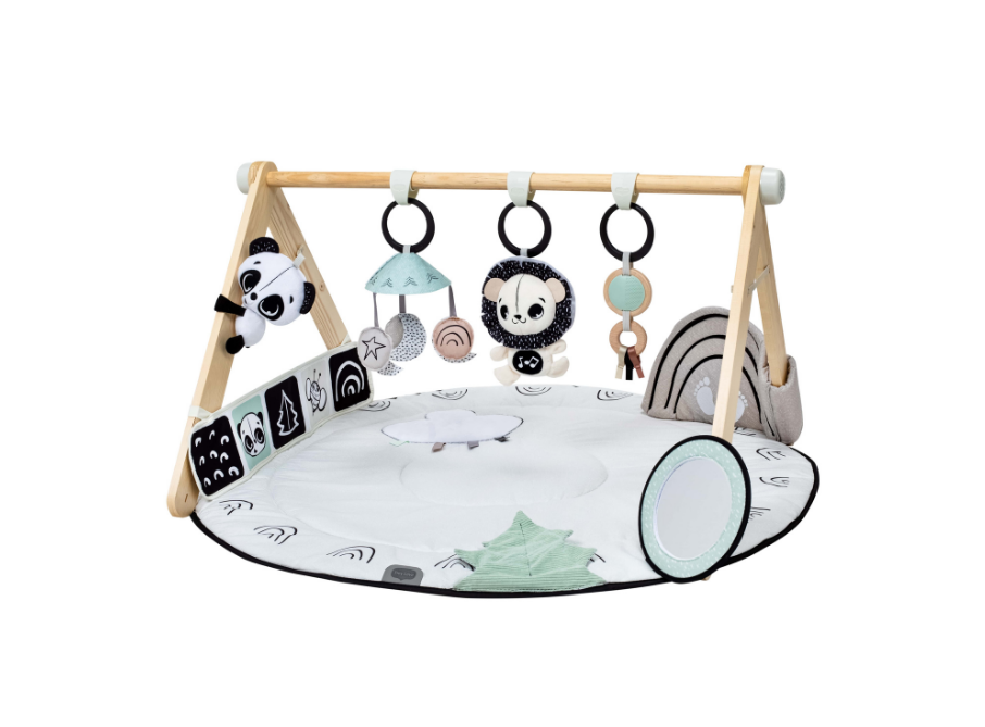 Bebekler, oyun ve keşif yoluyla önemli aşamaları geçerken, sevimli, tepki veren müzikli aslan oyuncağı, hışırtılı geometrik kontrastlı dönence, dev gökkuşağı topu, siyah beyaz taşınabilir kitap, karın üstü yatma aynası ve hışırtılı oyuncaklarla büyülenecek. Bağımsız, doğal ahşap bir kemerle benzersiz bir tasarıma sahip olan Gymini®, bebeğinizi yenidoğan aylarından oturma aşamasına kadar eğlendirirken, evinize şık bir dekor dokunuşu katacak.